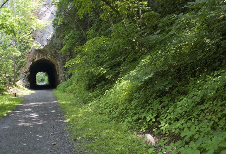 The New River Trail features several tunnels. These tunnels add to the historical and scenic charm of the trail, offering unique passages through the landscape and enhancing the experience for hikers, bikers, and riders.